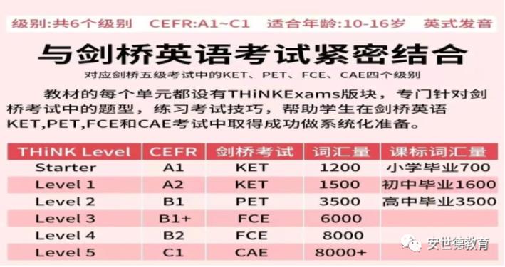 Think教材共6册数,分为A/B/C三个级别,分别对应剑桥的4个考试。我们可以看到表中Starter一本书就对应了小学,Starter的内容不适合一二年级,可以规划从4年级开始学这本书,精刷这本书。